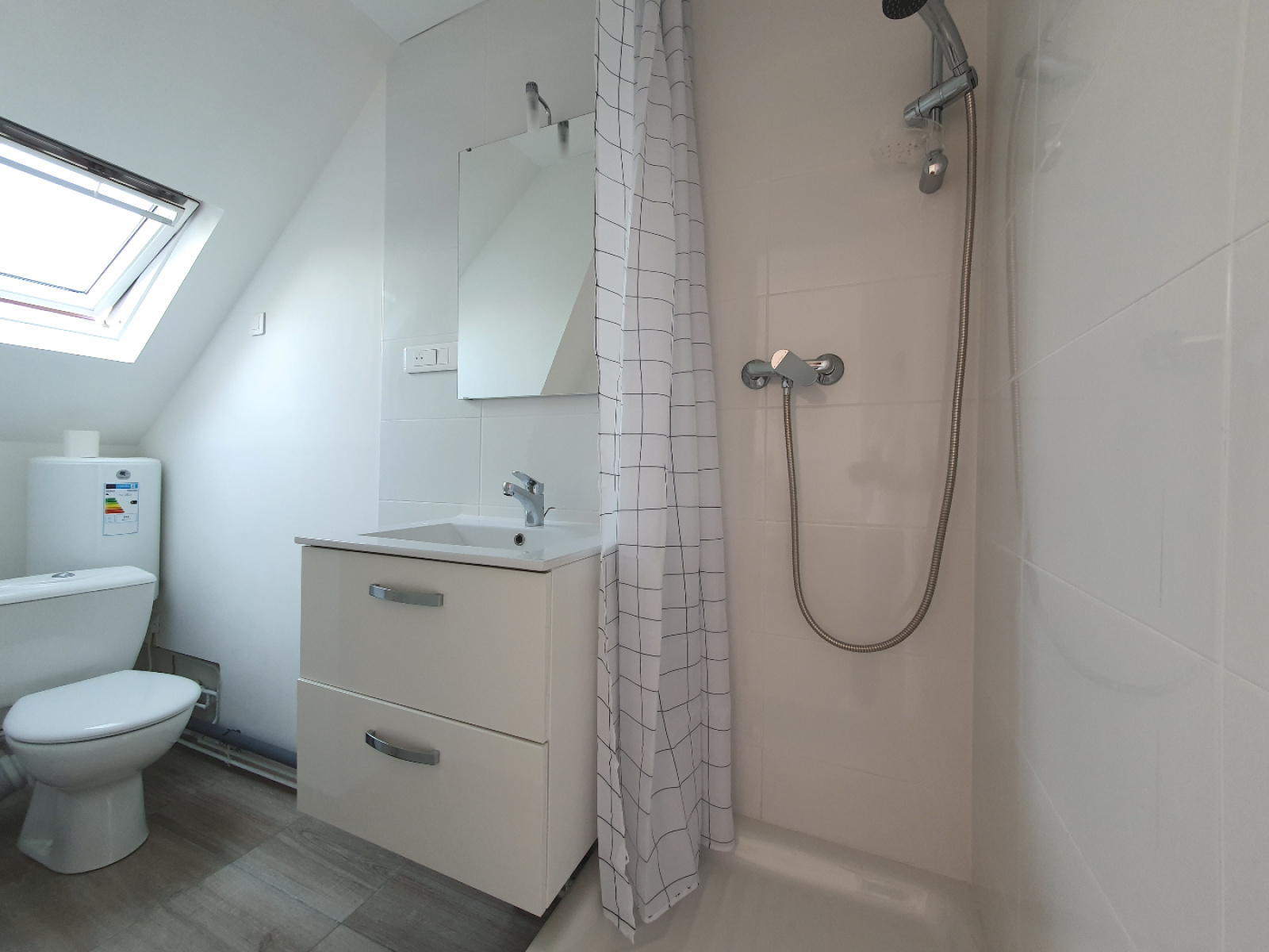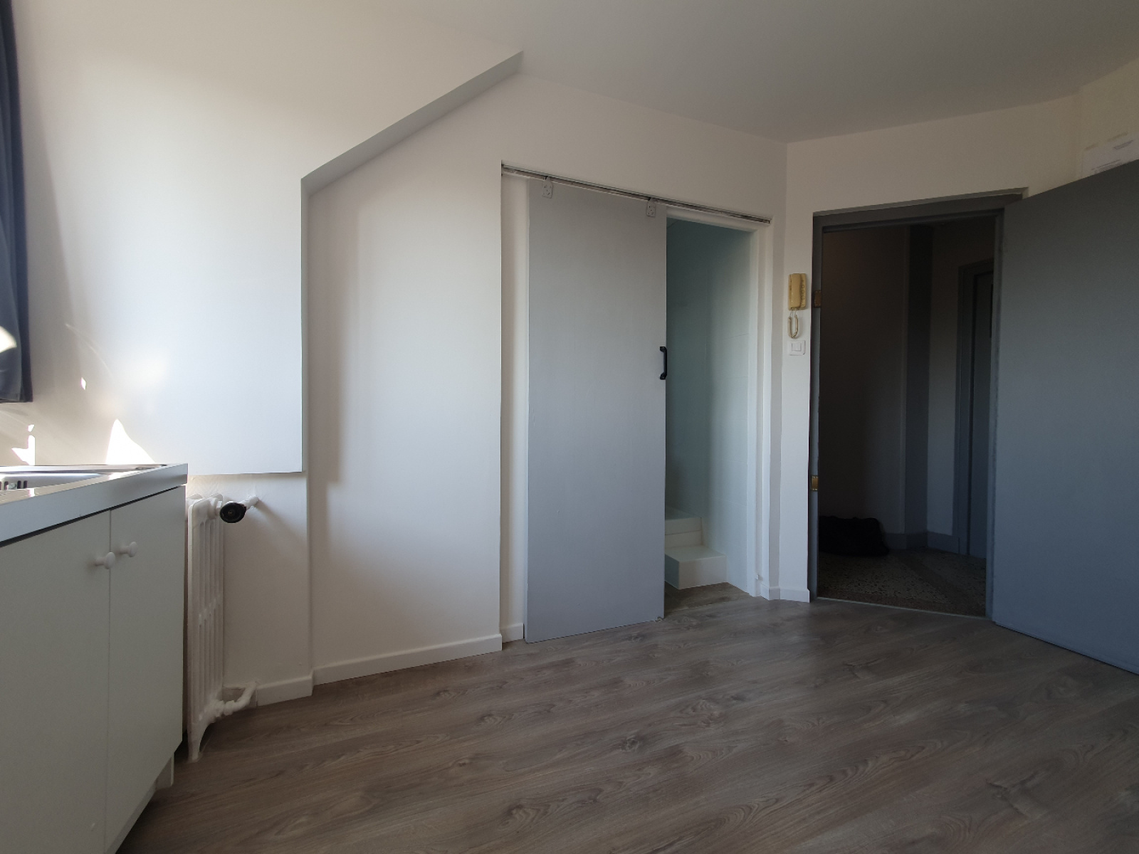 Au dernier étage d'une petite copropriété, studio refait à neuf comprenant une pièce principale avec kitchenette, salle d'eau avec WC.