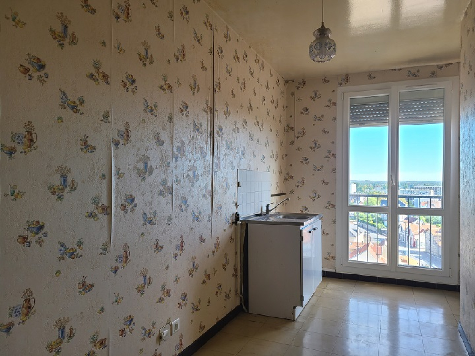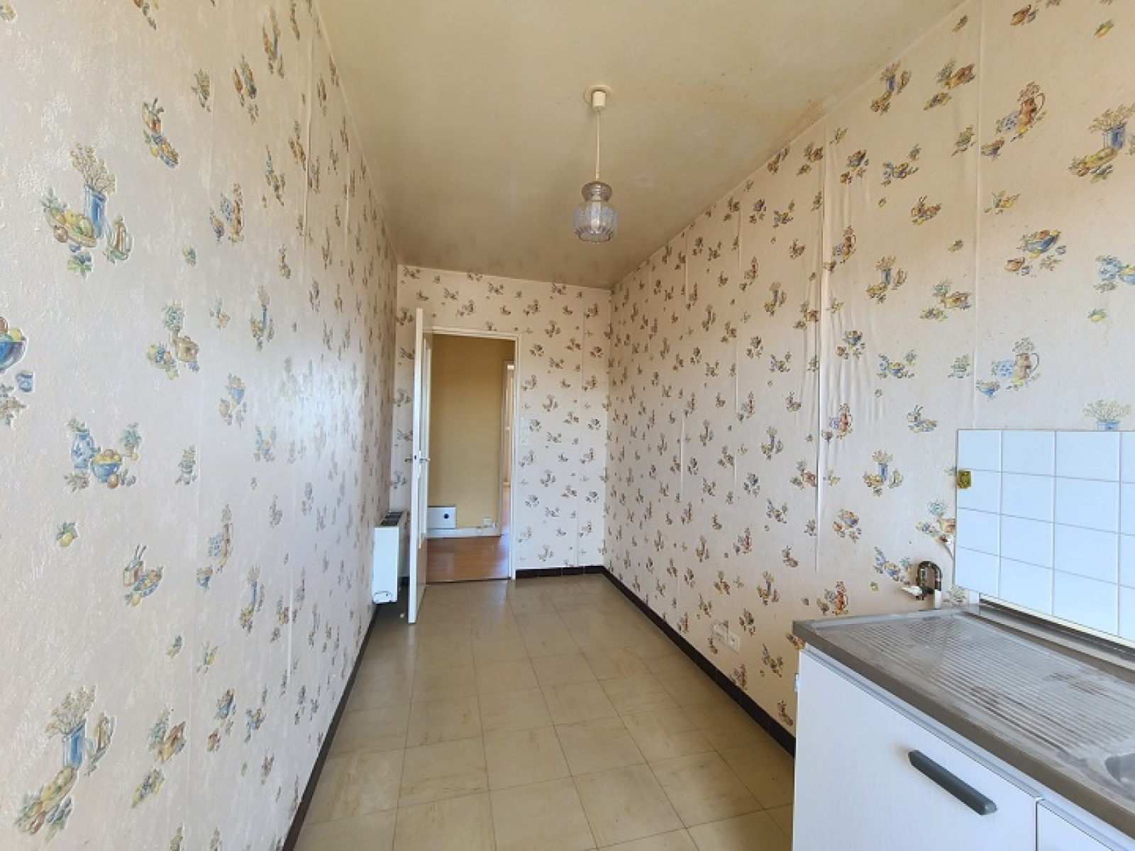 Fenêtres deux vantaux Radiateur Meuble évier Lino Arrivée gaz et machine à laver