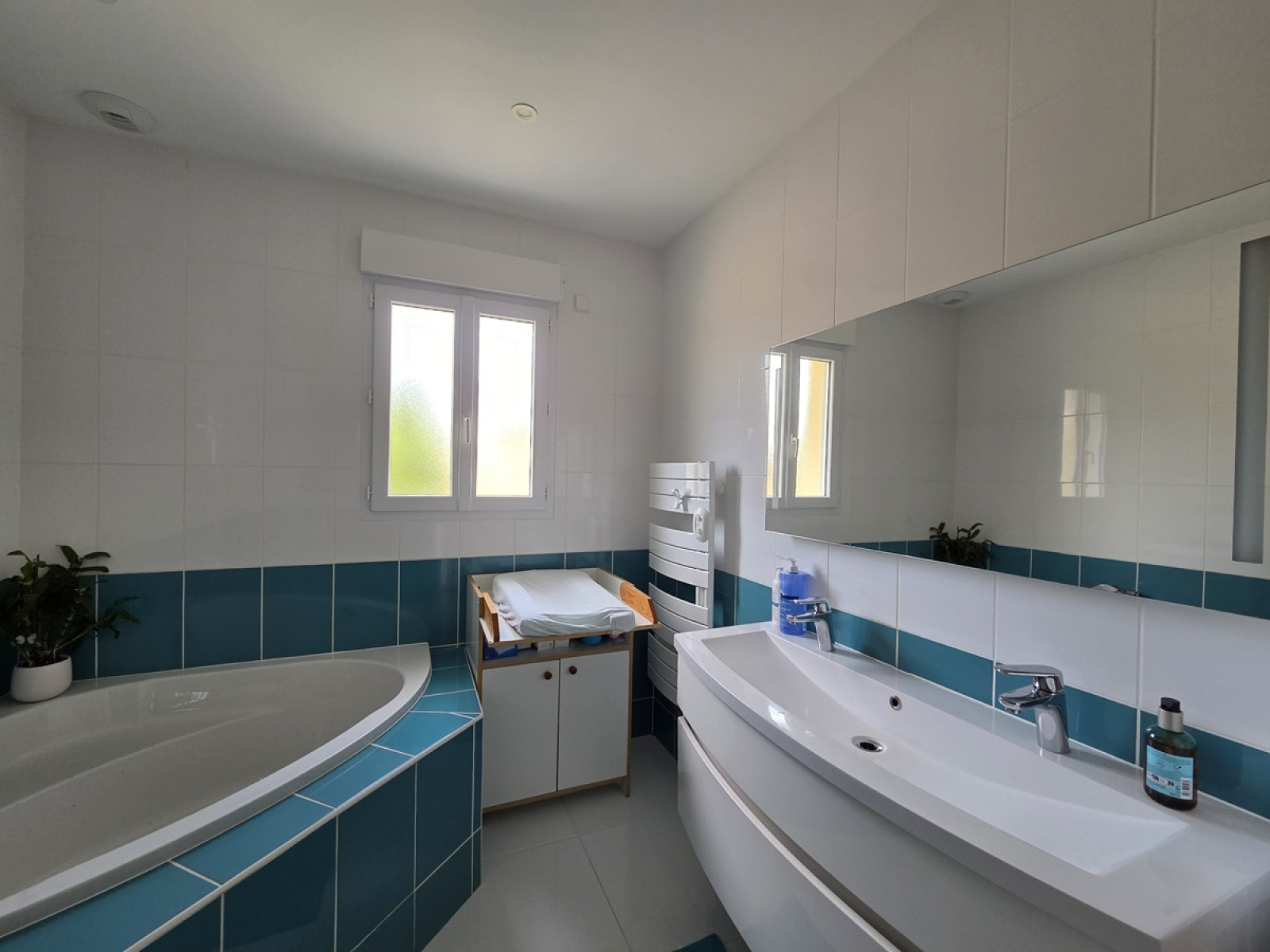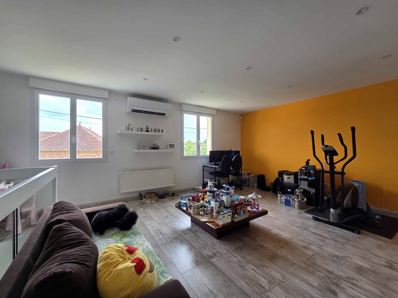 Chauffage électrique au sol programmable + poêle à granules, chauffe eau thermodynamique, climatisation à l'étage, fenêtres avec double vitrage et volets roulants électriques.