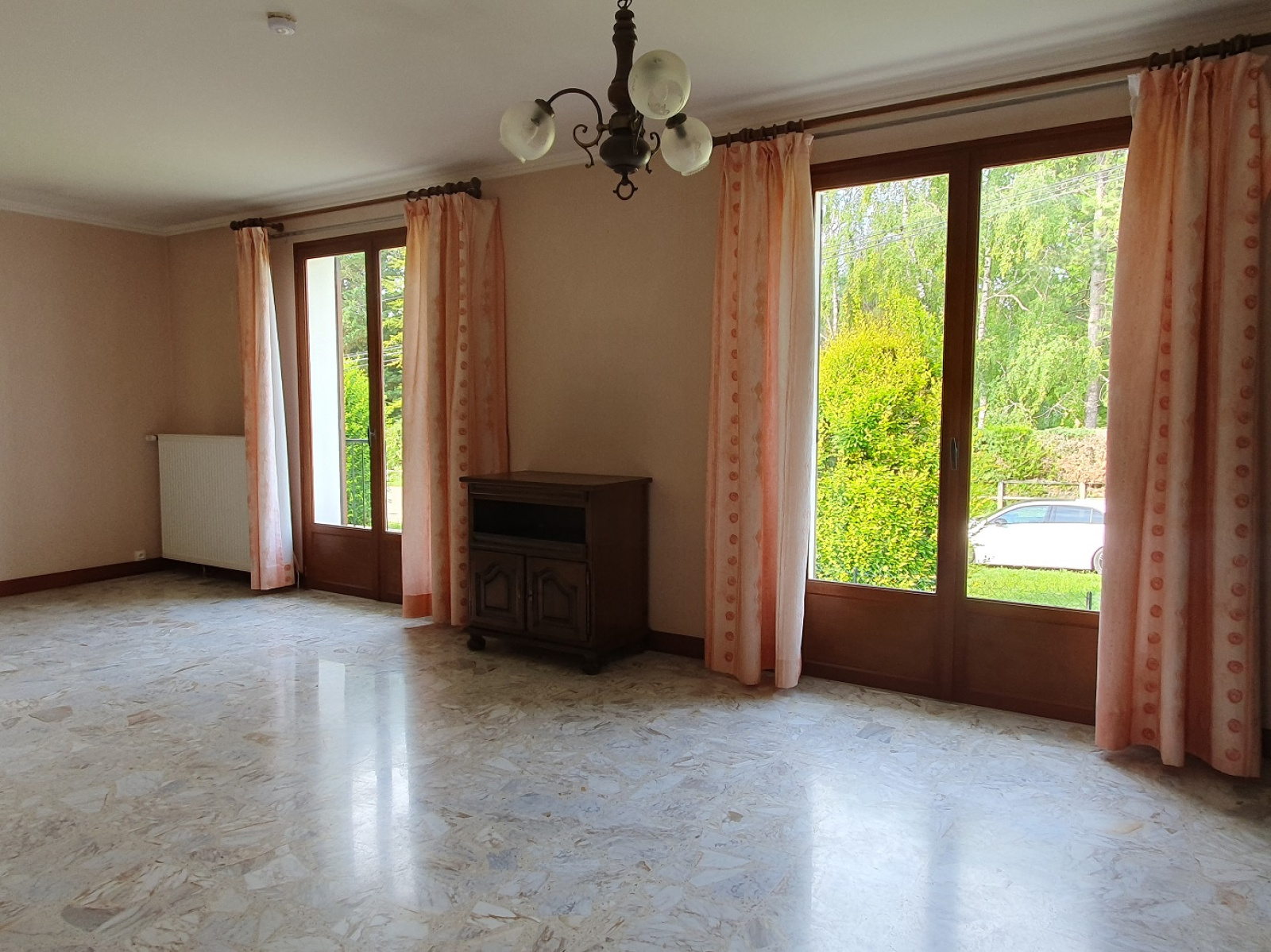 Porte fenêtre SV bois parquet flottant, papier peint
