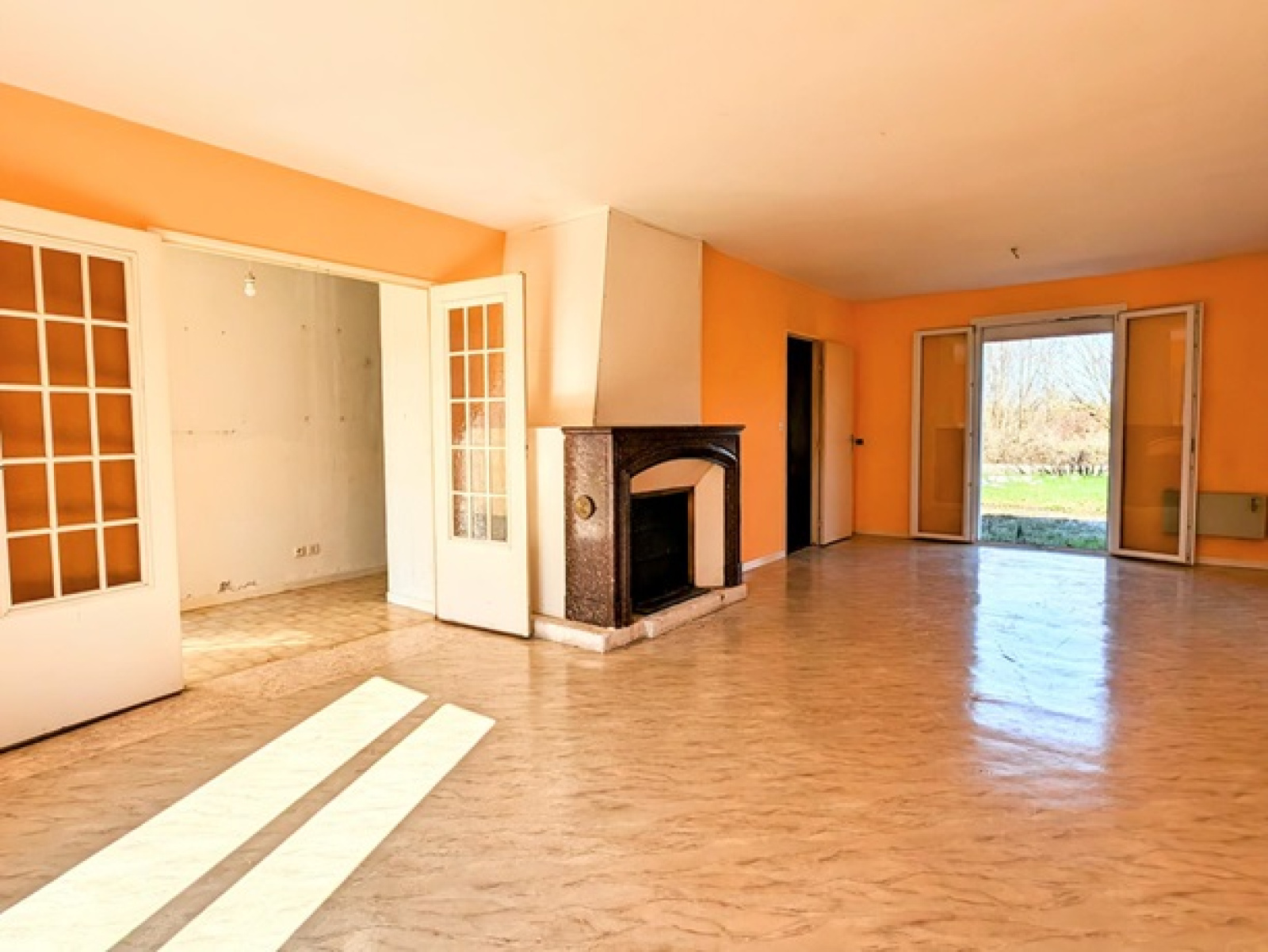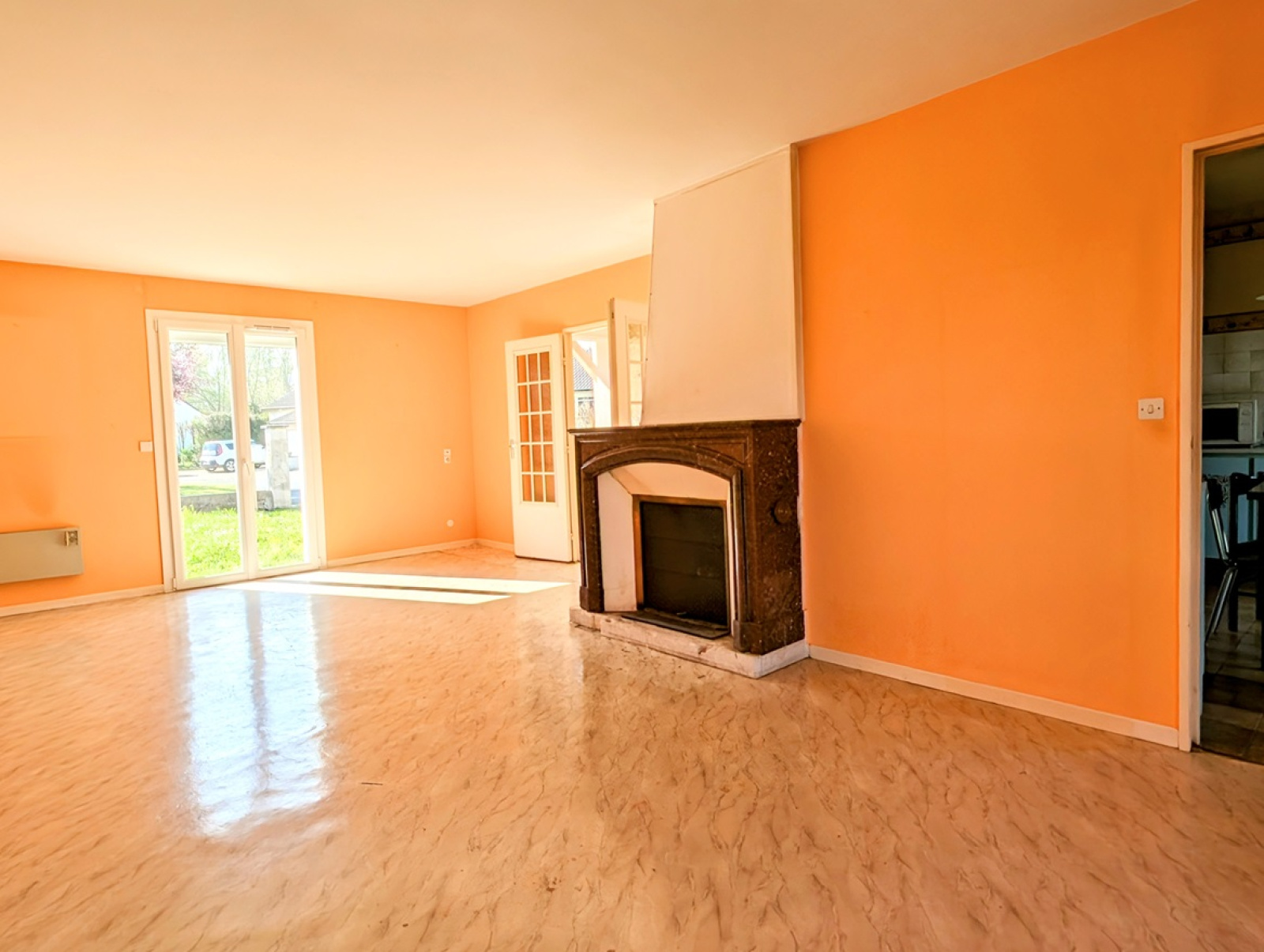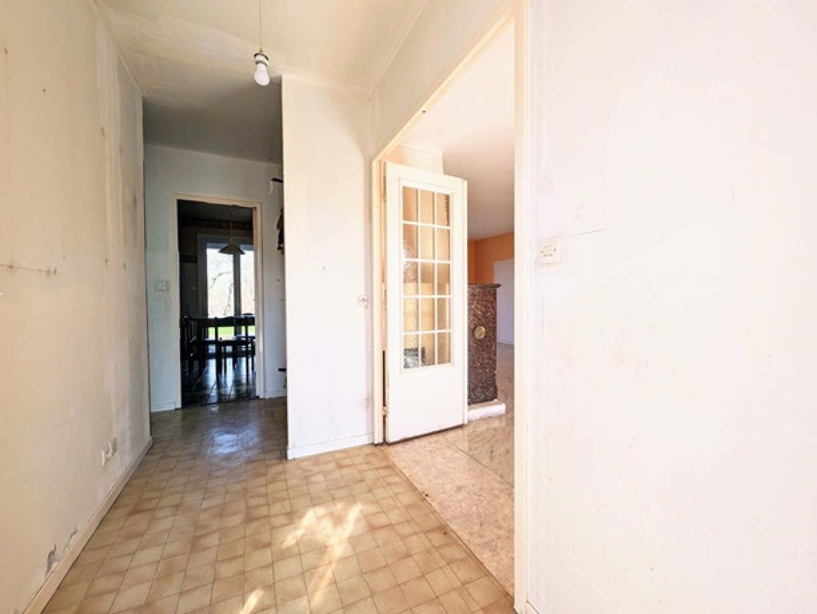 Pavillon de plain pied de 1984 comprenant une entrée avec emplacement de placard, couloir, séjour double, cuisine, trois chambres, salle d'eau, wc, garage accolé.