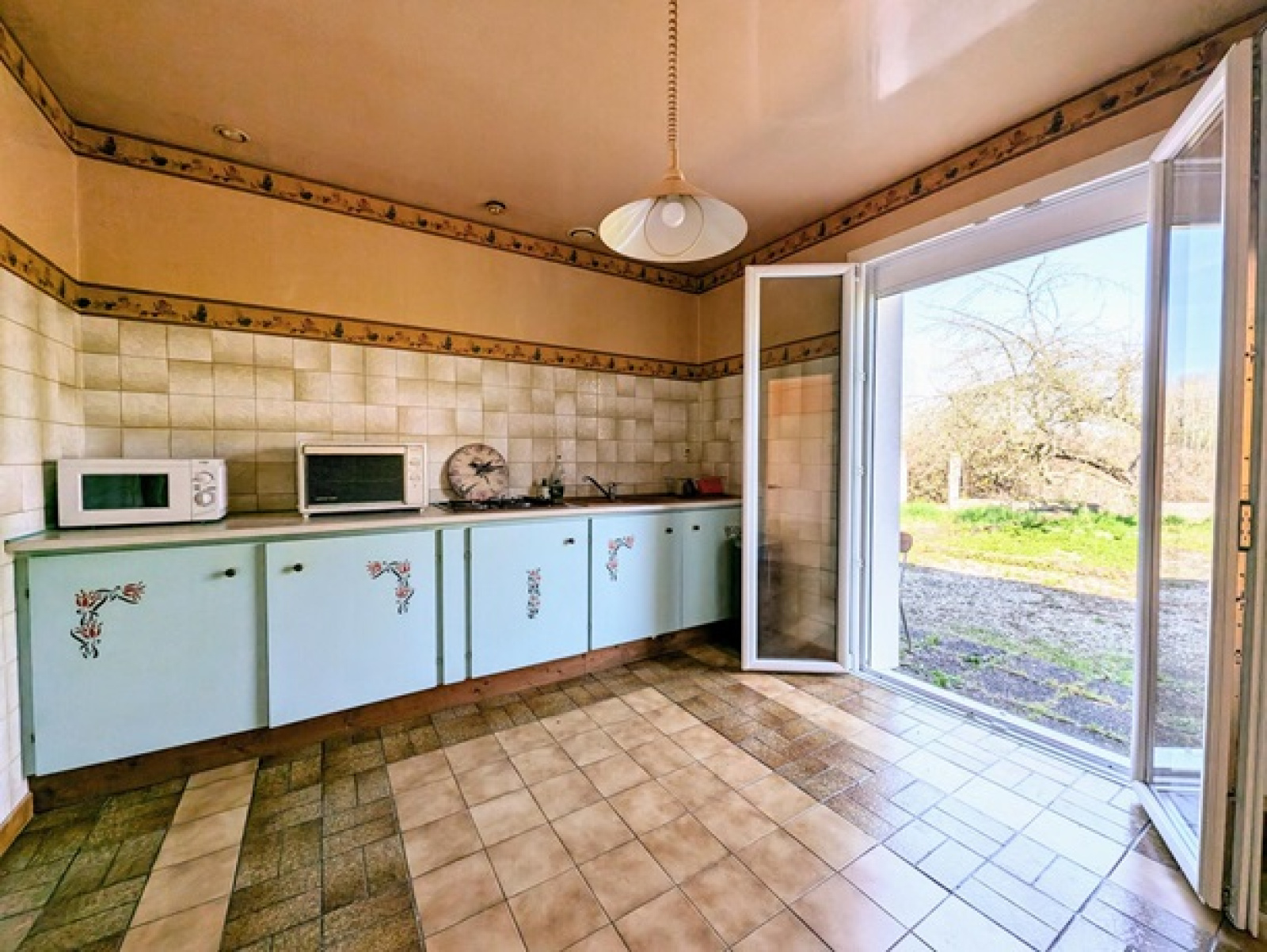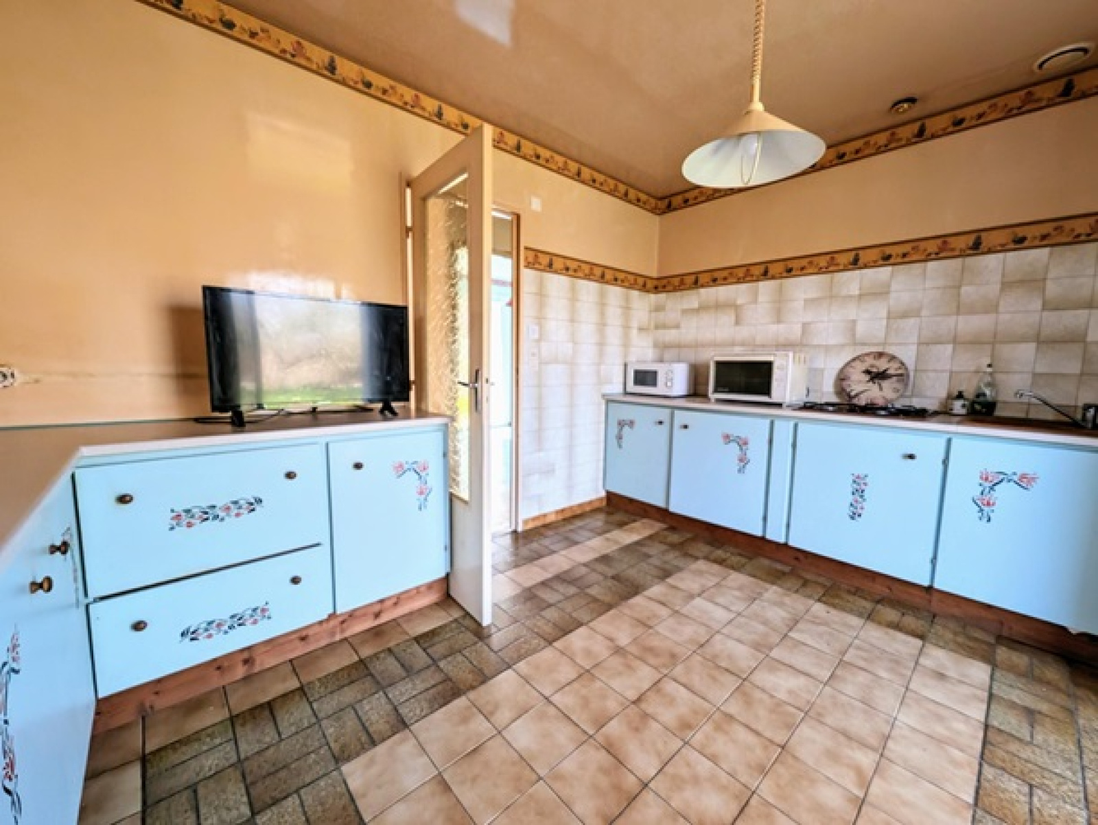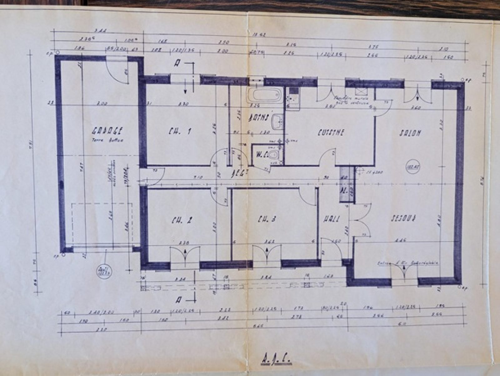 Pavillon de plain pied de 1984 comprenant une entrée avec emplacement de placard, couloir, séjour double, cuisine, trois chambres, salle d'eau, wc, garage accolé.